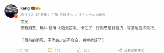 在9月6日的消息中,有关苹果最新款手机iPhone 17 Air的国行版本面临上市难题,主要原因在于eSIM政策的限制。尽管如此,苹果并未止步,已在积极备货iPhone 17 Air在国内的销售,这表明他们与相关部门进行了有效沟通,只待eSIM政策最终落实,就能迅速推向市场。