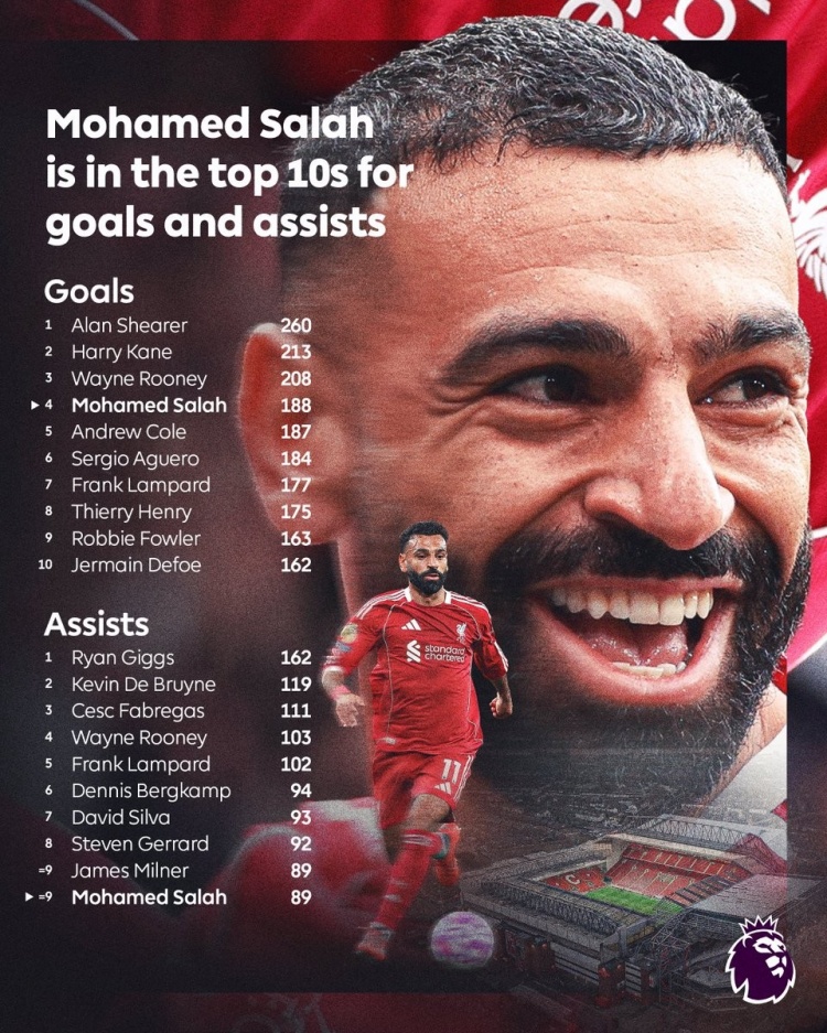同时,在英超历史助攻榜上,萨拉赫以89次助攻榜上并列第九,显示出他不仅是一名出色的得分手,也是一位出色的组织者。助攻排行的前十名如下: