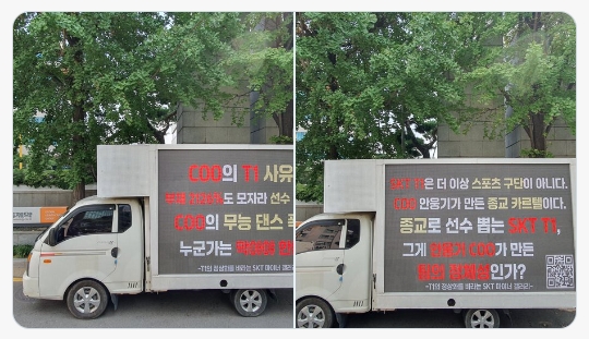 10月1日讯 在LCK第三赛段的比赛中,T1凭借第四名的成绩成功晋级S赛,但球迷们对此结果并不满,随即围绕CEO、COO及选手Gumayusi展开了为期三天的卡车示威游行。