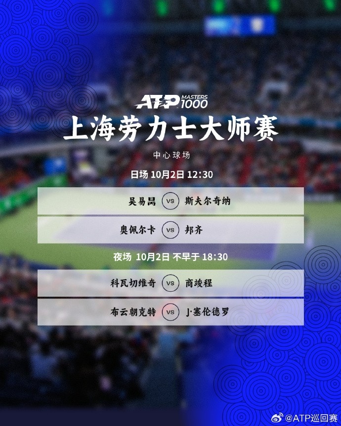 10月2日,上海劳力士大师赛正如火如荼地进行,首轮的争夺吸引了众多观众的目光。这一天,中国选手们将接连出战,展现他们在国际赛场上的风采。吴易昺、商竣程、布云朝克特和周意,四位年轻的 tennis 天才,肩负着家国的期望,期待在这场顶级赛事中打出精彩的表现。