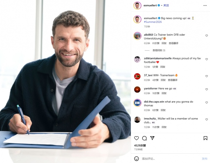 10月10日,穆勒在社交媒体上放了个大烟花,声称有“重磅消息”即将揭晓,还加上了#2026夏天#的标签,这简直给球迷们的想象力点上了火。有人甚至天马行空地猜测,穆勒可能会在2026年世界杯上以教练组成员身份现身,真是让人忍俊不禁。