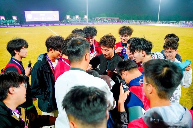 比赛当天,骆岗公园热浪滚滚,人潮涌动。在紧张的赛事间歇期,徽州本土的足球明星、现役国脚韦世豪的到场,无疑为比赛增添了不少星光。韦世豪不遗余力地为这场盛会助威,并与合肥、蚌埠以及安徽青训的三位队长热情交流,互换球衣,展现了体育精神和团结的魅力。